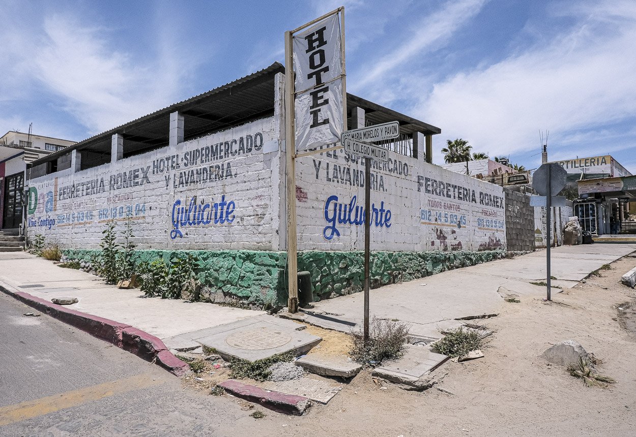 I only exposed 275 frames during the entire week we were there. Typically when traveling I will make more photographs than that in a few hours. But here there were only a couple potential subjects that caught my eye. A dilapidated building with a blue door on a street corner in Cabo San Lucas. An arched sign over the entrance to an abandoned water park adjacent to the hotel zone on Medano Beach. I made time to photograph both, even pulling out the infrared camera body when making images of the latter.
