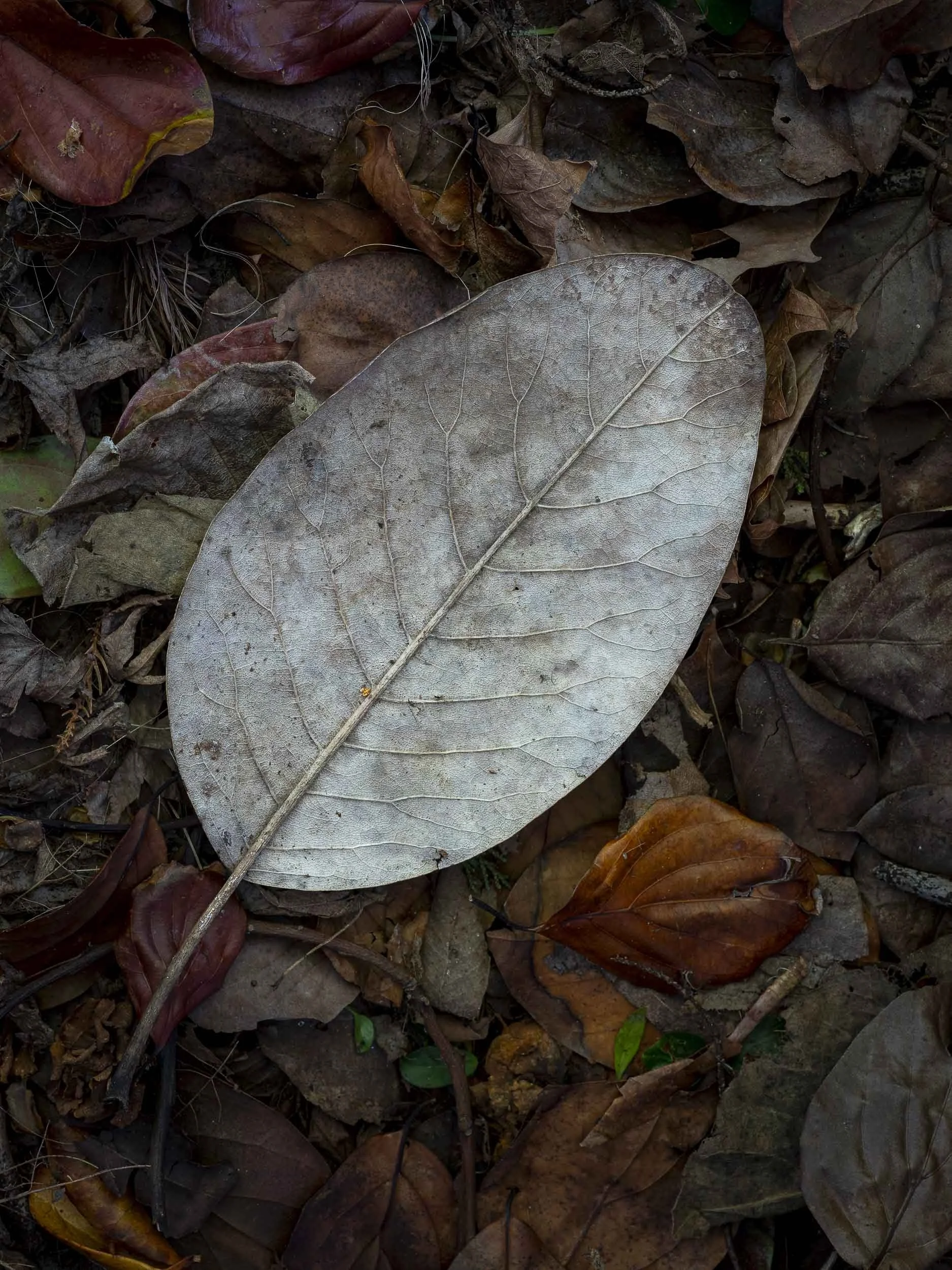 Each leaf was photographed where it fell; nothing of consequence was moved. Each rests on its fallen siblings and ancestors, decomposing as they combine to sustain future generations. These are found compositions, created by nature. Captured moments in time; a brief interlude on a longer journey that perhaps will cause you to reflect upon your own.